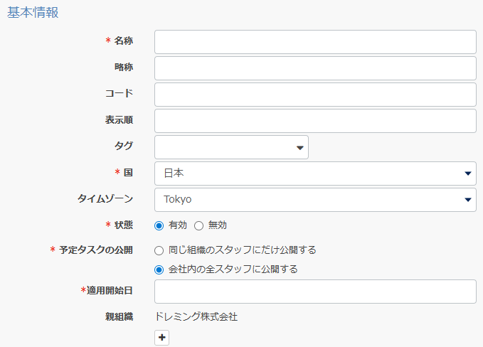 Doreming > Set Up > Group management > 組織|組織を新規作成する