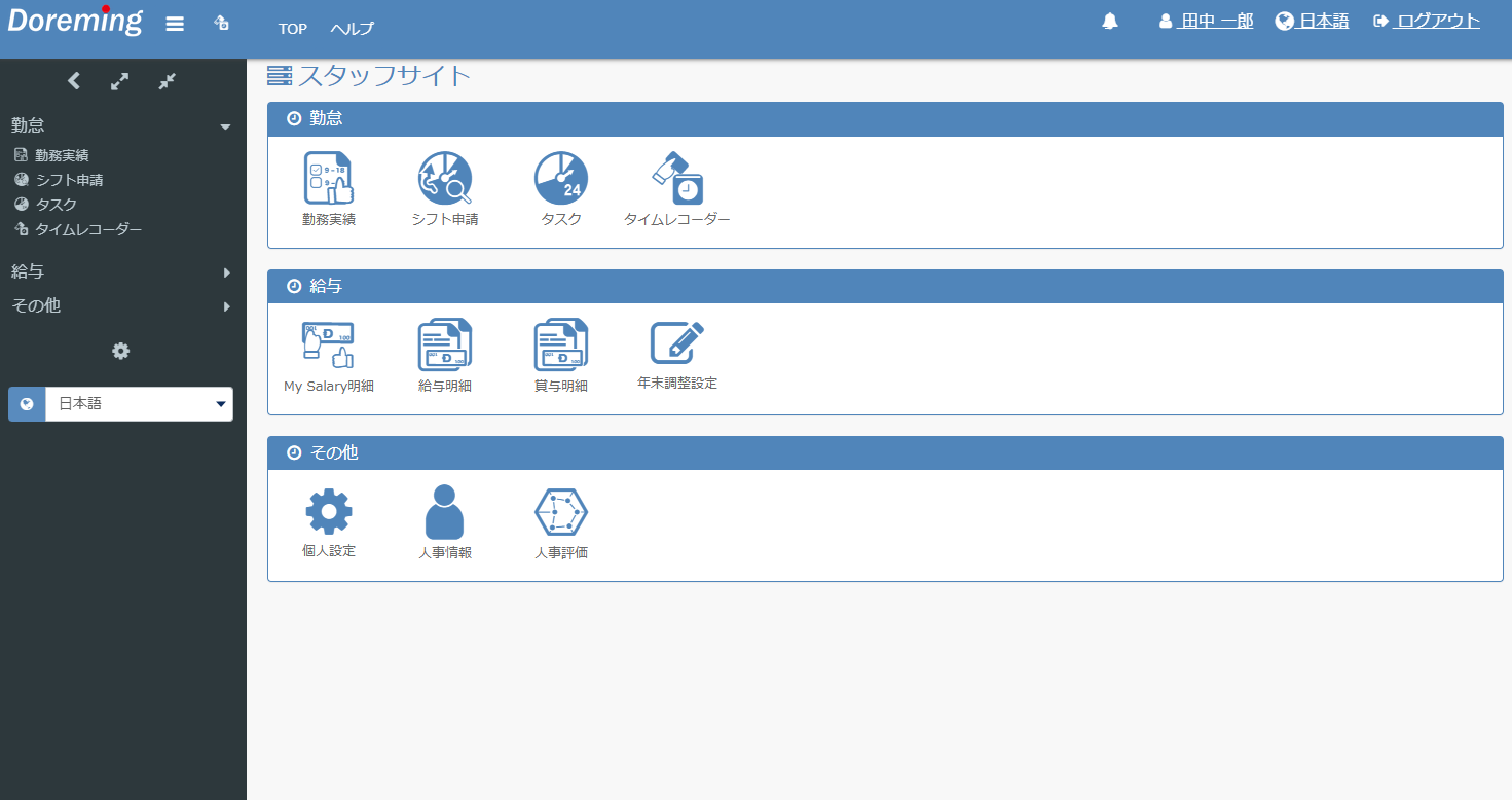 スタッフサイトでは打刻、シフトの申請、勤務実績の承認、MySalaryの振込などができます。
