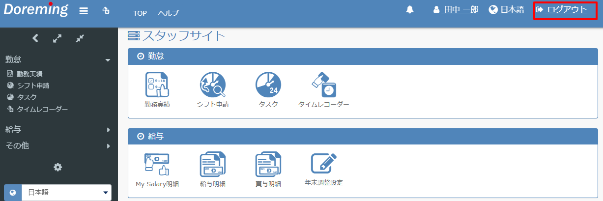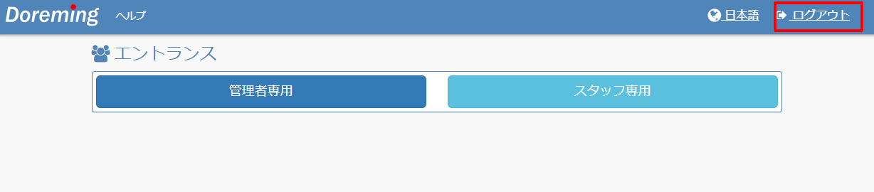 スタッフサイト画面:画面右上のログアウトをクリックします。