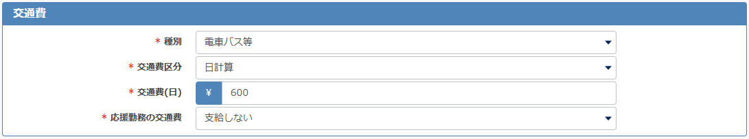 ※交通費を支給する区分の設定は、勤務休暇区分の設定をご参照ください。