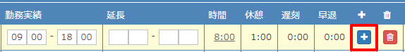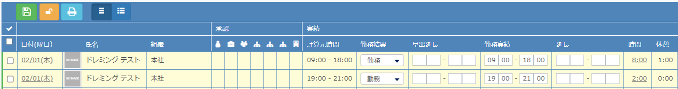 下記は、同じ日の複数勤務を登録する例です。