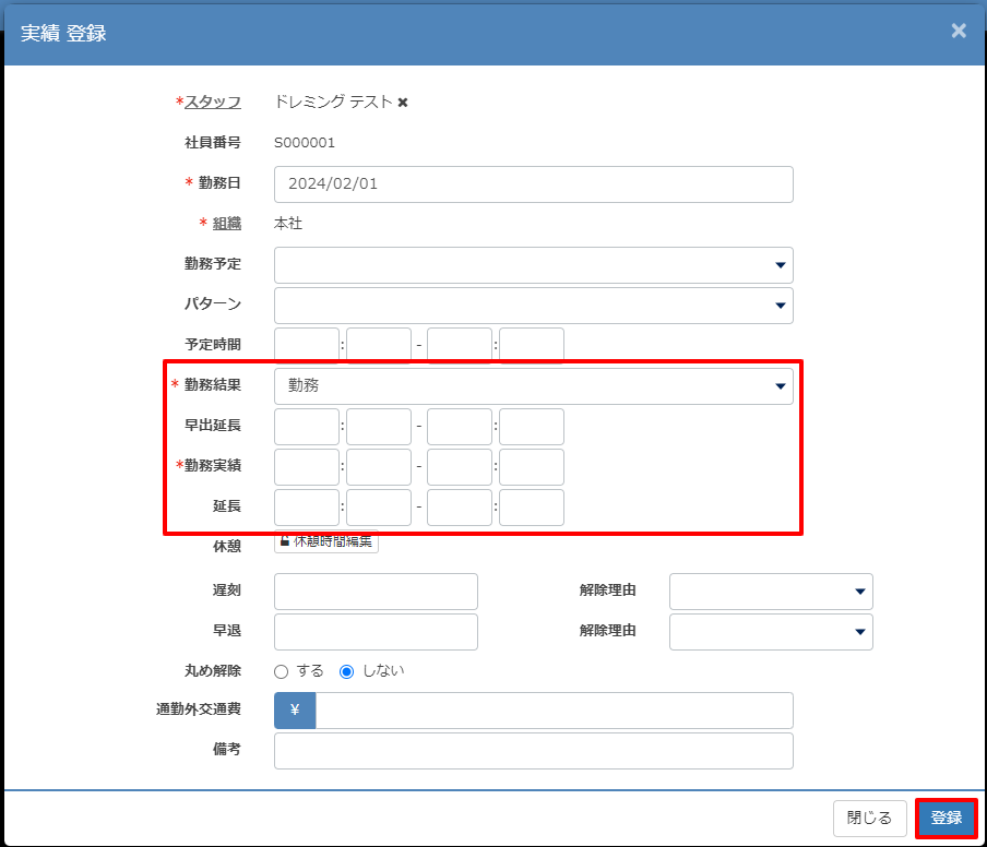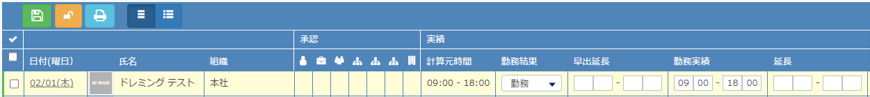 勤務実績の登録