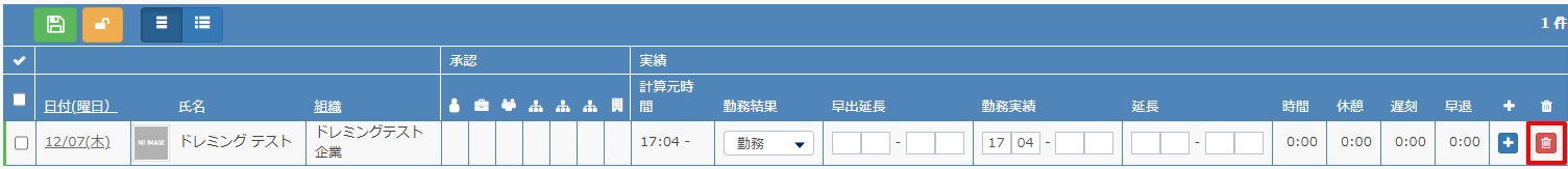 勤務実績を削除する