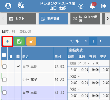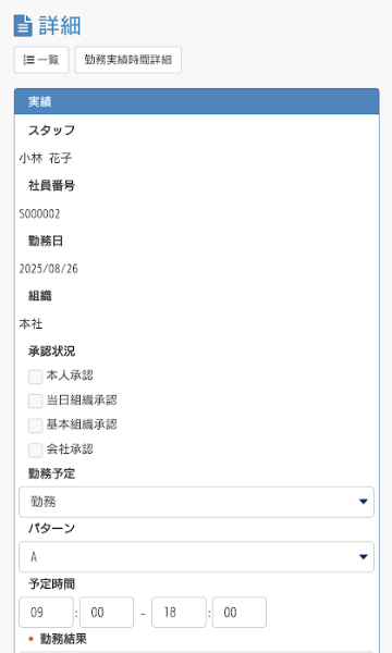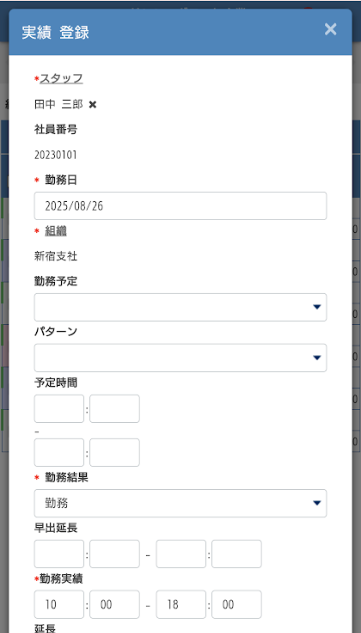 ※スタッフに勤務実績の登録、修正を許可している場合は、スタッフ自身で行うこともできます。
