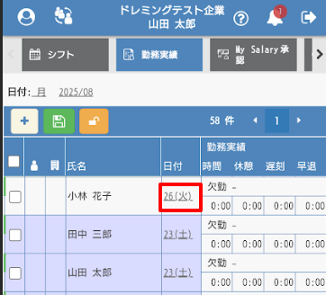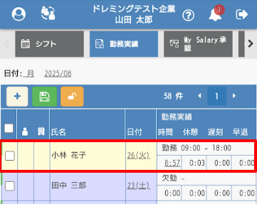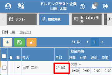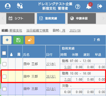 勤務実績の修正