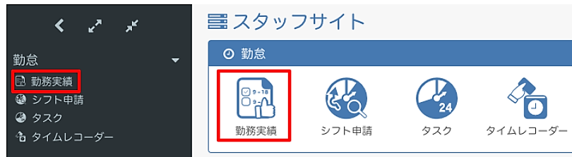 - 勤怠ー勤務実績をクリックします。