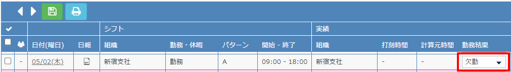 勤務結果を勤務に変えます。