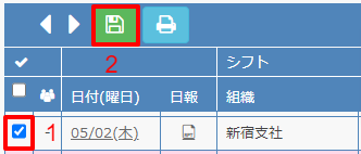 勤務実績一覧画面から実績を登録、修正する