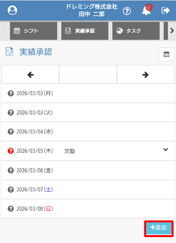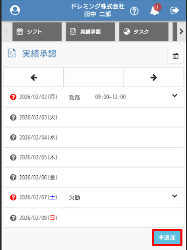 ・同じ勤務日に2本目の勤務実績を追加したい時