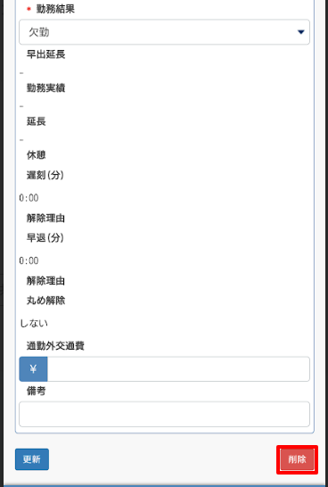 勤務実績の削除