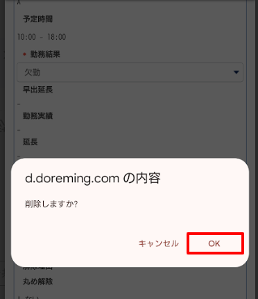 スマートフォンからの勤務実績の削除