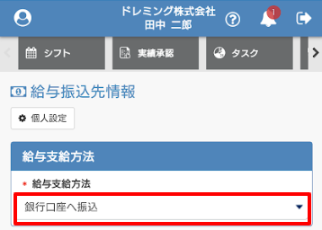 Doreming > For Employee > スタッフサイト|給与 > スタッフ操作|給与振込先口座を登録する