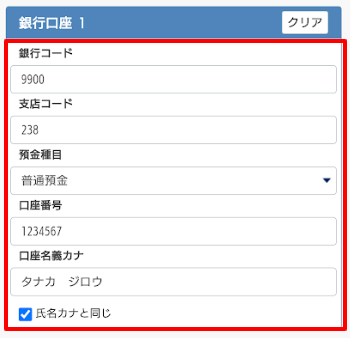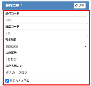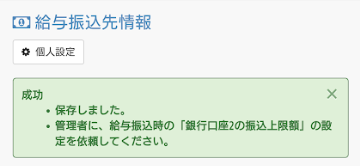※スタッフの労働条件の操作許可設定で、口座情報の編集が許可されている場合にのみスタッフ自身で登録することができます。
