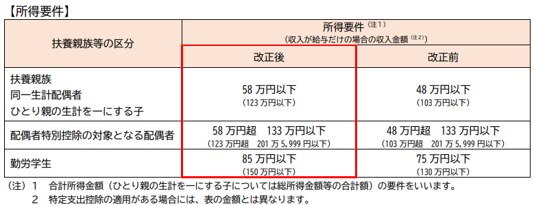 扶養控除等の対象となる扶養親族等の所得要件が改正されました。令和7年12月1日以後に支払う給与から所得要件の改正が適用され、年末調整にもこの改正が適用されます。