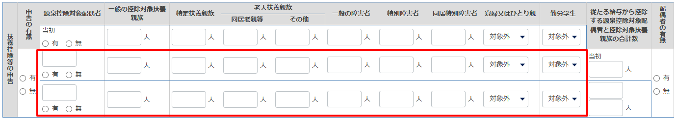 (Doremingでは扶養親族の年齢、所得金額で自動的に判定し扶養控除等(異動)申告書に反映されます)