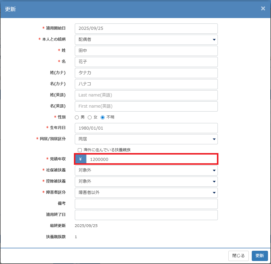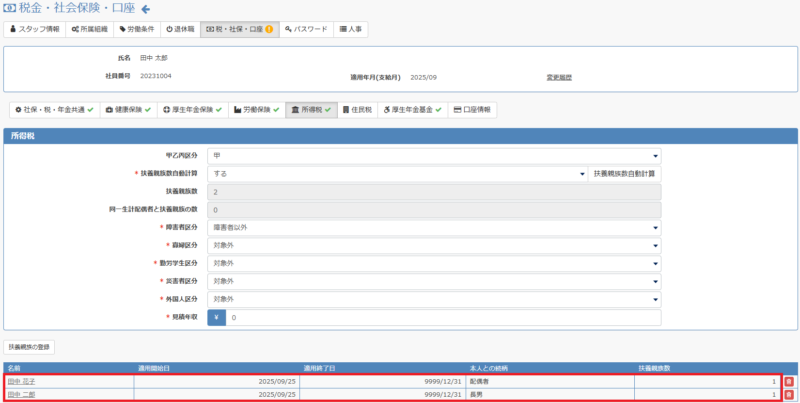 ■税金・社会保険・口座画面の扶養親族の見積年収